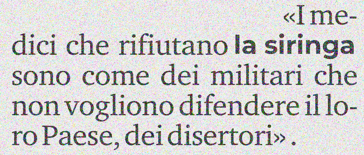 “I dottori sono ‘obbligati’ per legge a bucarsi, non solo liberi di ‘SCEGLIERE’! Obbligatorietà è libertà sono concetti contrastanti!” dice il giornalista.