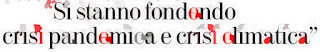 L’invisibile nemico è molto ‘feroce’, molto ‘subdolo’, non guarda in faccia a nessuno, ‘galoppa’, ‘corre veloce’ a scavezzacollo, dobbiamo fare lo stesso con le siringhe conficcate nelle carni vive dei mammiferi sani asintomali!” dice la kommissaria kom del sud al nord esperta d'invisibile artista attivista anti-razzasmo kandid.