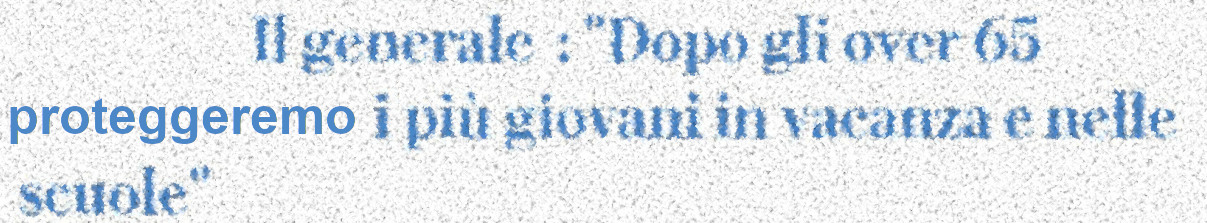 “Viviamo nel tempo dell’invisibilenemico nell’aere infettante, è ‘subdolo’, ‘insidioso’, ‘sempre sorprendente’, ‘non perdona’, ‘uccide’ i già compromessi e i vecchi, ma si prende tutto il merito, anche grazie agli incentivi economics gov-lab, ma non solo questo, l’invisibile ‘corre veloce’, ‘galoppa’, mutagena, e mutagenando si fa più ‘aggressivo’, ‘kolpisce i più giovani’, ergo, adesso anche