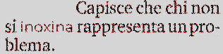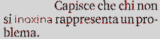 “Francamente non li comprendo! Tutte le Agenzie Pharmac hanno dichiarato sicuri efficaci cento cento gli inoculexativi, tutti gli ‘esperti’ oggettivi unanimi, riconoscono che gli inoculexativi ‘HANNO CAMBIATO LA STORIA’ - siamo d’accordo su questo ma non sul giudizio di valore – ergo, ‘TUTTI’ si devono bucare, con dispiacere noto che c’è ‘troppa preoccupazione riguardo ai presunti effetti’ avversativi prodotti dagli inoculexativi trombolici esteri, ma questo non è il momento di discutere, ma di avere ‘FIDUCIA’, di ‘CREDERE’ nella Vera Scienza è bucarsi con ‘GIOIA’ senza ‘tentennamenti’!” dice la kommissaria kom esperta d’invisibile e di salvezza docente presso la prestigiosa università della Capitale.