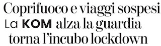 Stessa percentuale, trecento percento, per l’indice di mortalità! Se ti prende non ti lascia scampo! Le autorità komunitarie kom con l’intento di salvare quante più vite possibile, ‘CORRONO AI RIPARI’ e istituiscono la ‘NUOVA STRETTA’! Subito il coprifuoco e l’obbligo imposto di mascheratura facciale anti-invisible e anti-oxygn anche all’aperto! Gli esseri humans, soprattutto i kandid nordic, inquinano, komsumano troppo oxygn! Bisogna fare economia!